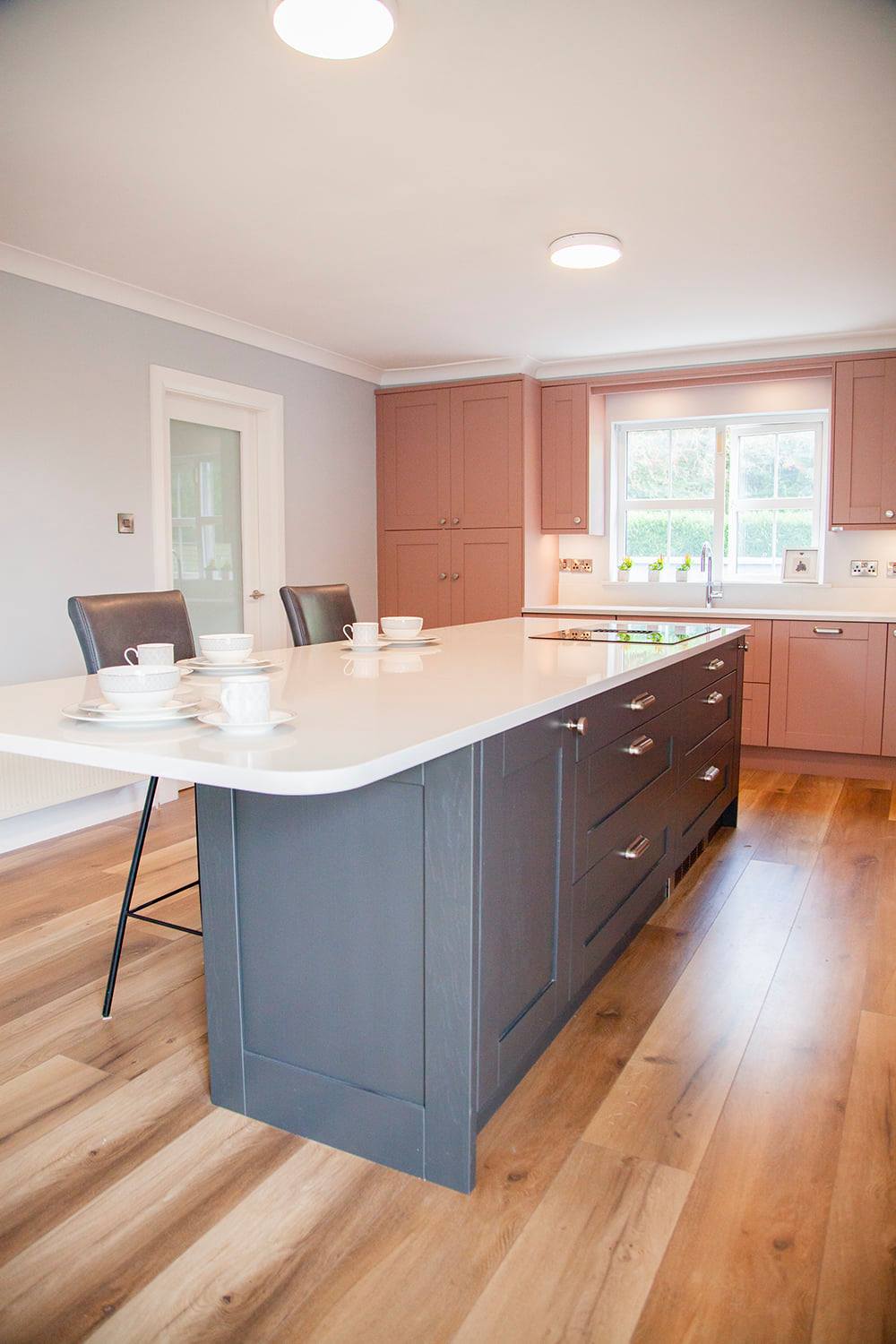 Welcome to this contemporary and sunny design which was completed in the colours chosen by Pamela. With modern appliances this kitchen and utility space has been transformed to meet the needs of a busy family home.